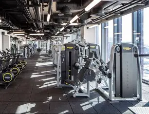 - Modern gym interior with exercise equipment